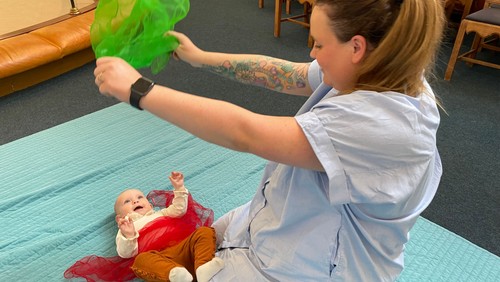 Pernille Tjørnemark leder babysalmesangen. Hun er uddannet musikpædagog fra Det Danske Kongelige Musikkonservatorium og har mange års erfaring med ledelse af babysalmesang og børnekor.